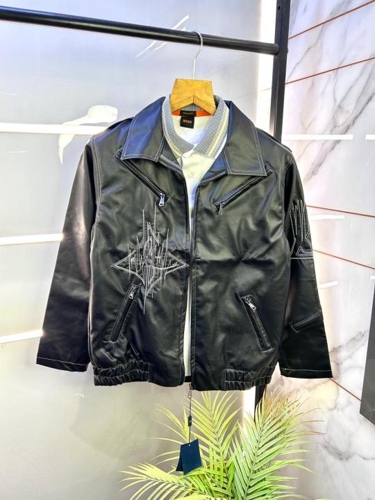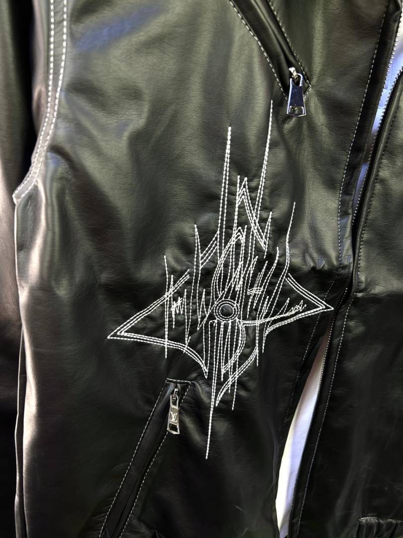 Louis_Vuitton Imported Super Premium Black Leather Zipper Jacket F3183-BL