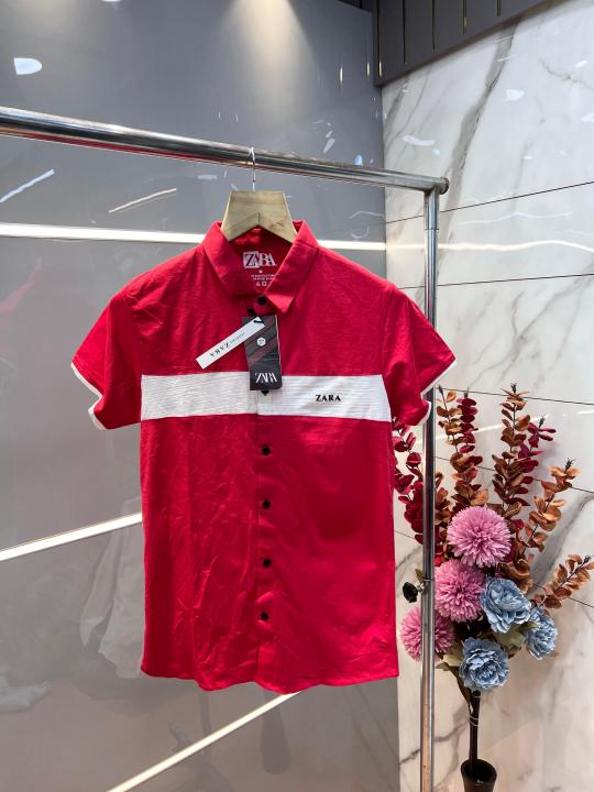 Zar a Red Premium Imported Shirt with Emboss Logo Print 3198